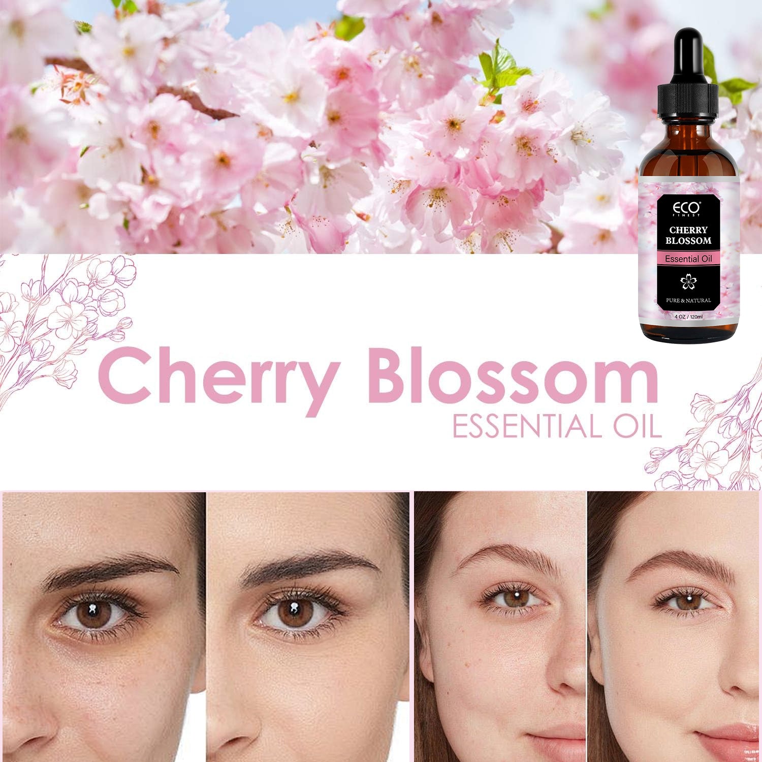 120ml Cherry Blossom Essential Oil – Pure & Natural Floral Scent for Aromatherapy, Diffuser, Skin & Hair Care
