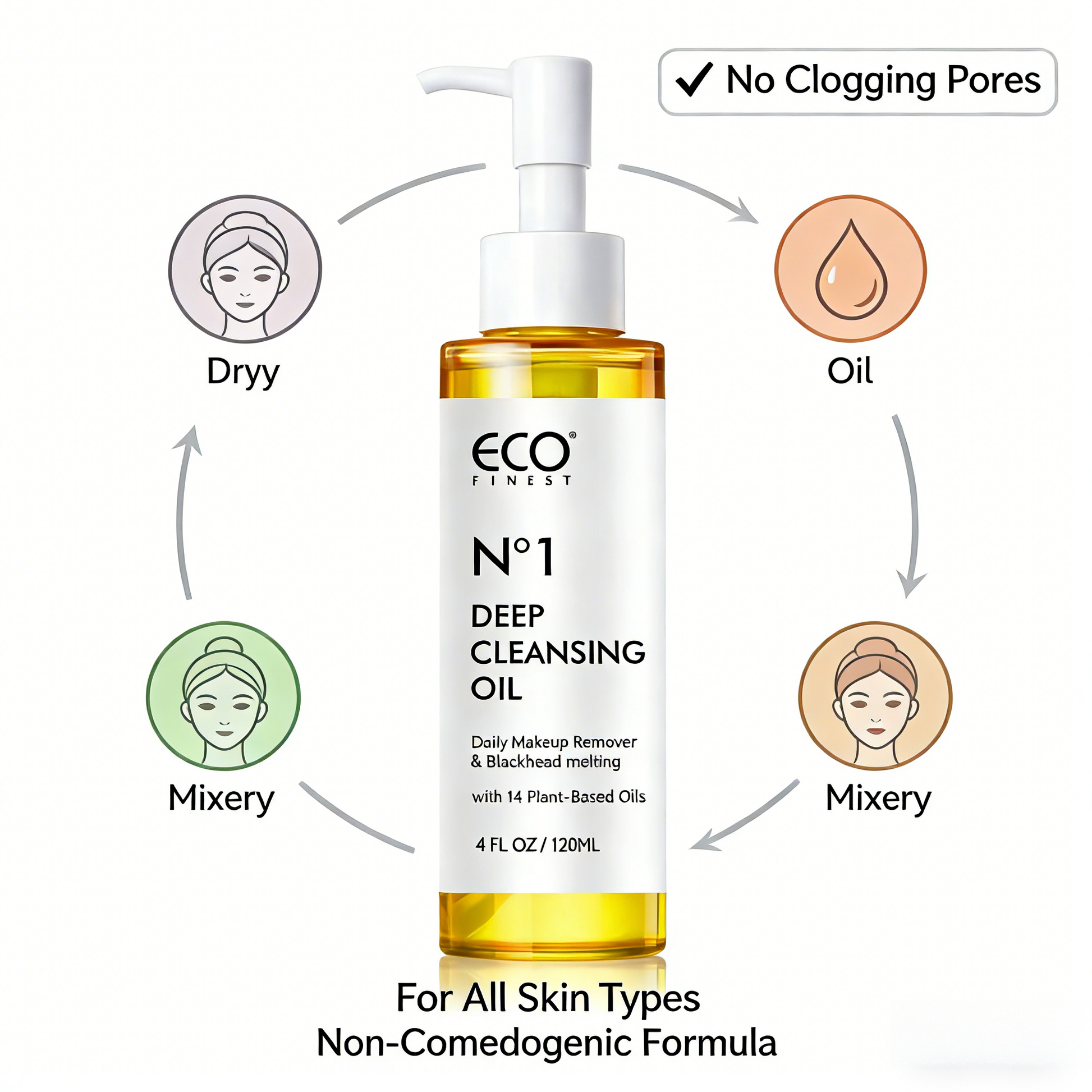 Deep Cleansing Oil 120ml – 14 plant oils dissolve makeup & blackheads gently. No pore clogging, for all skin types. Vegan, cruelty-free, non-comedogenic. Your daily oil cleanser for a clean, soft, fresh face