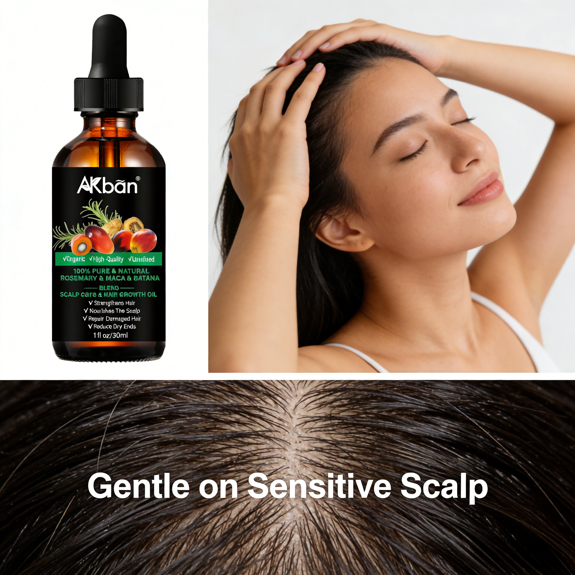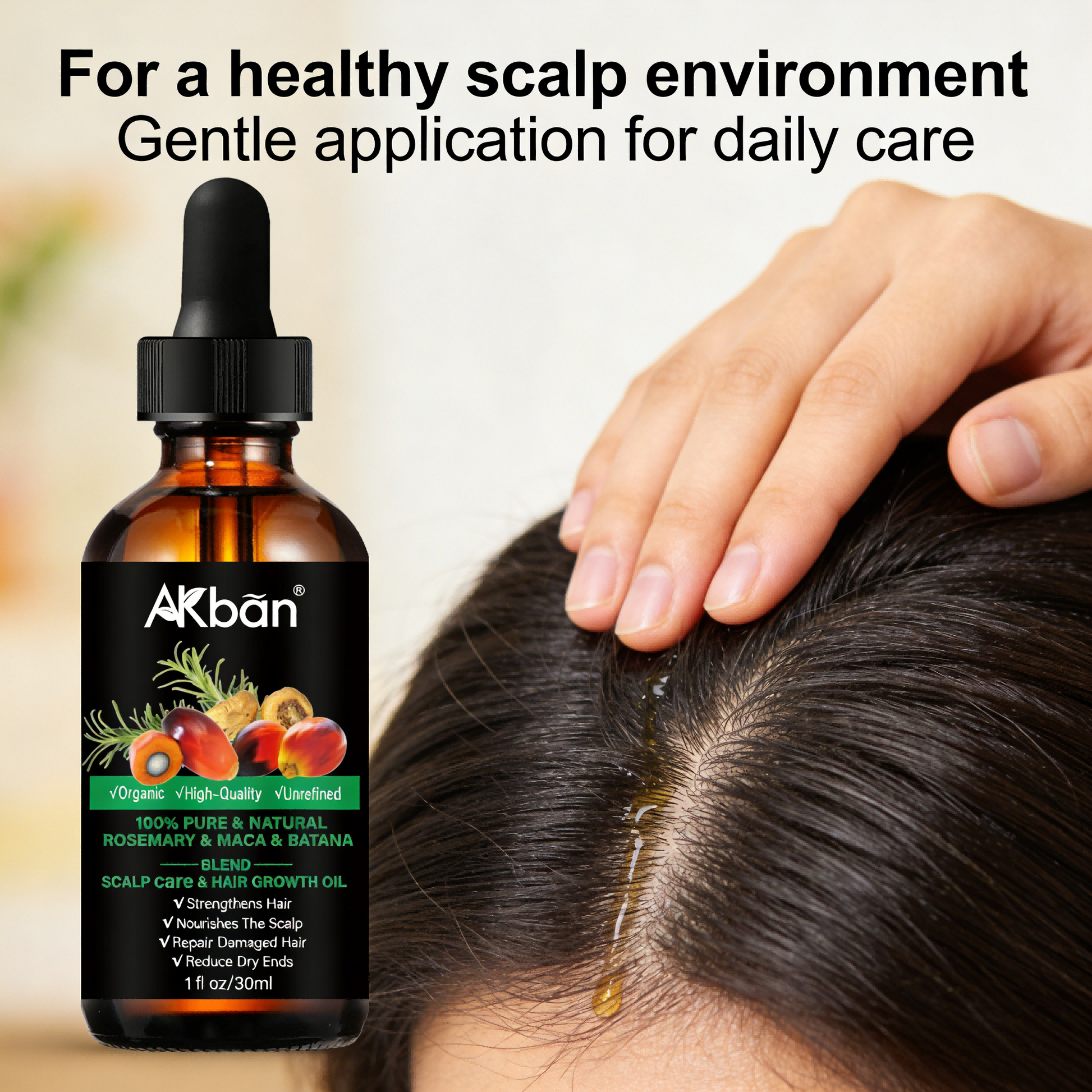 2 x 30ml AKBAN Rosemary & Maca & Batana Oil – Natural Hair Care Blend for Scalp & Hair | Organic, Unrefined, Lightweight Formula