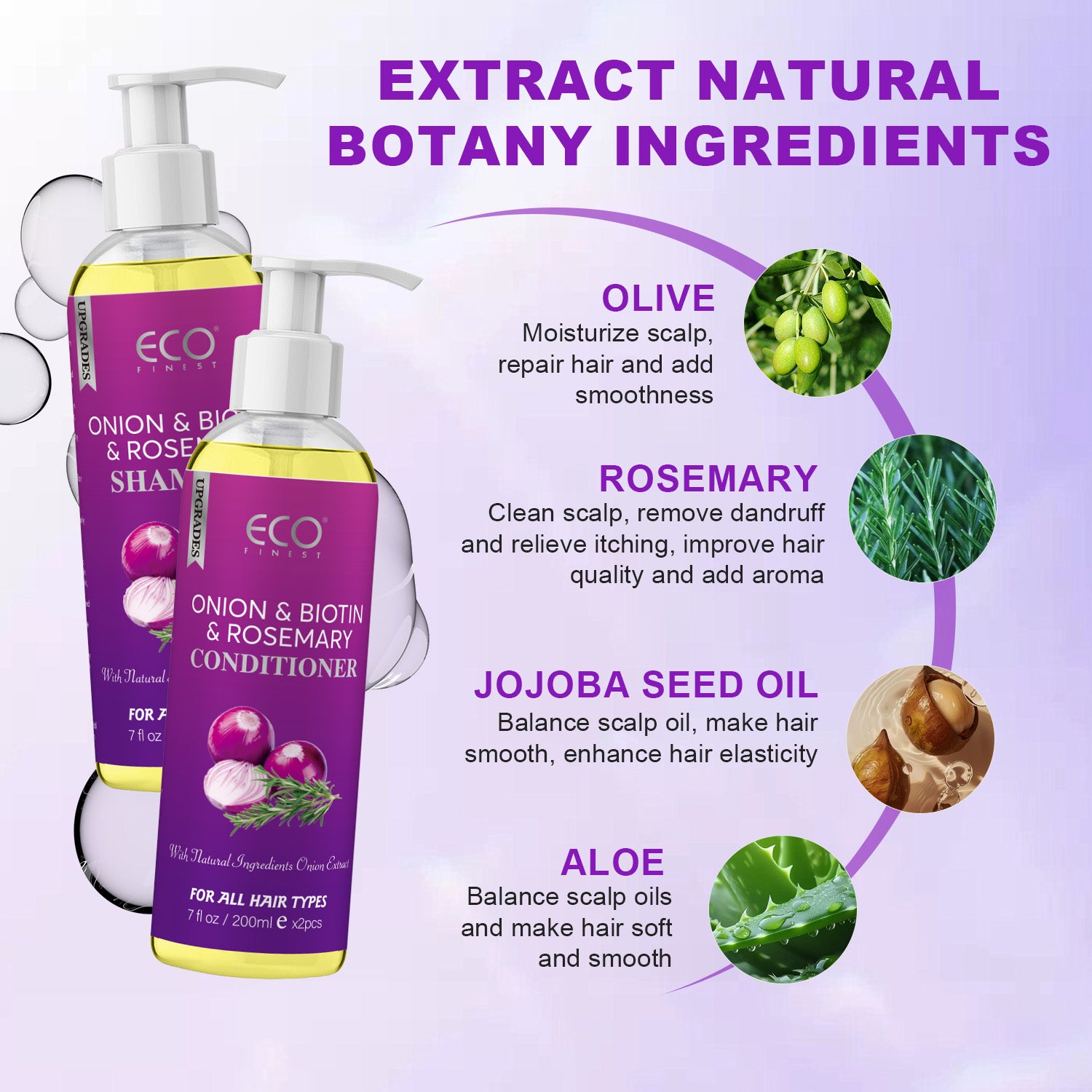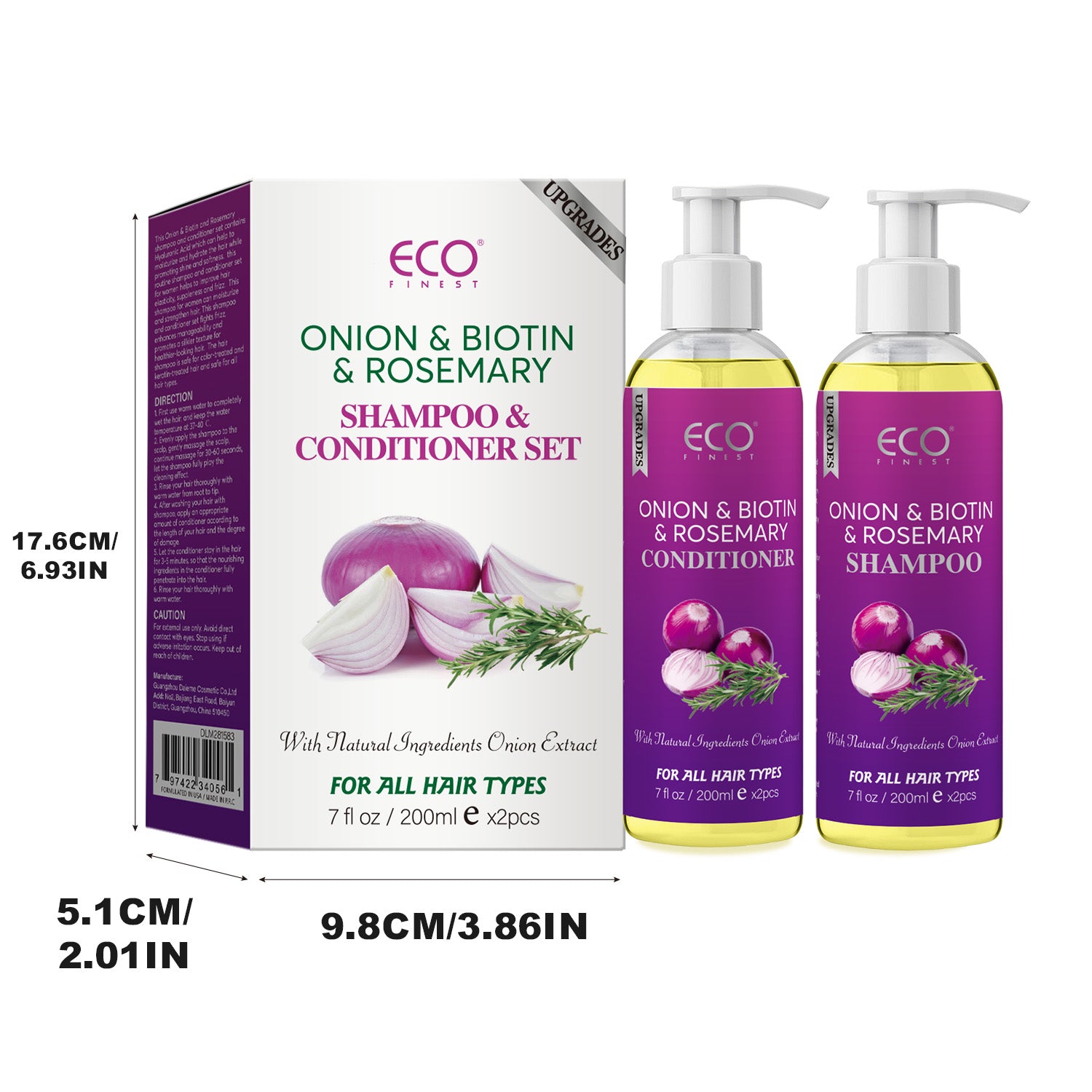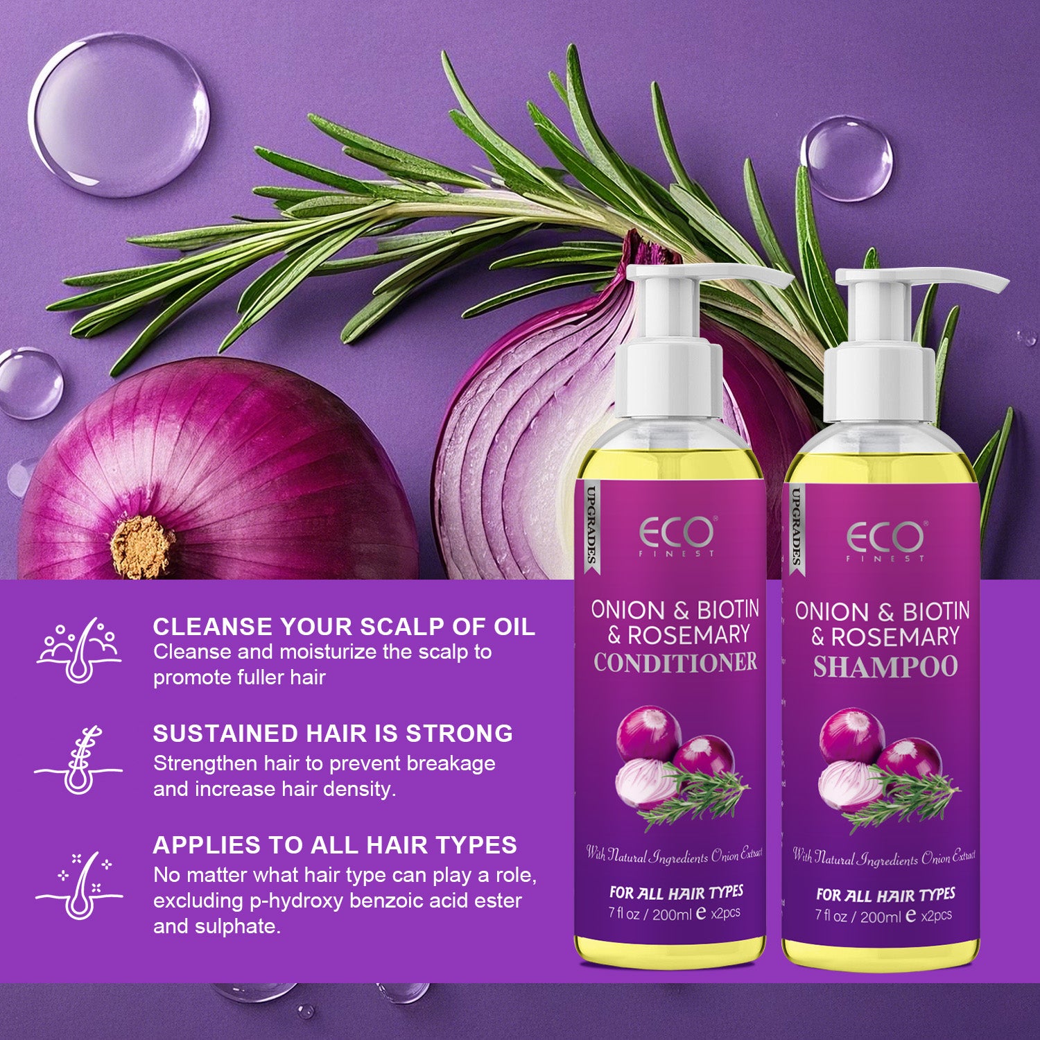 200ml x 2 Onion & Rosemary Shampoo & Conditioner Set – Natural Hair Growth Formula with Biotin, for Stronger, Thicker Hair and Scalp Care