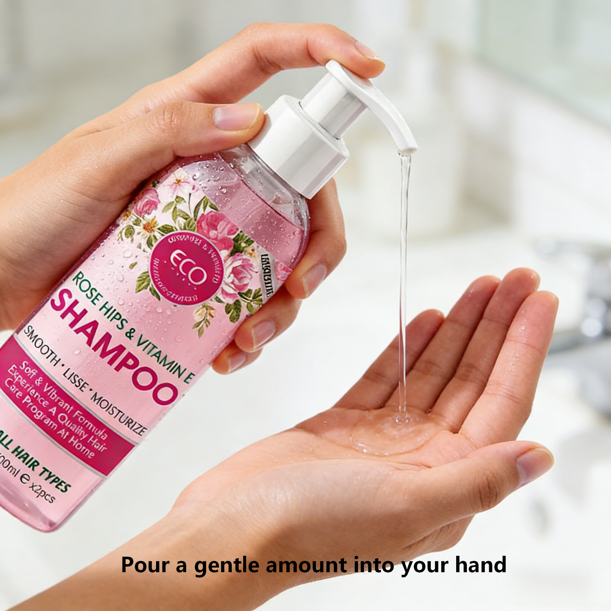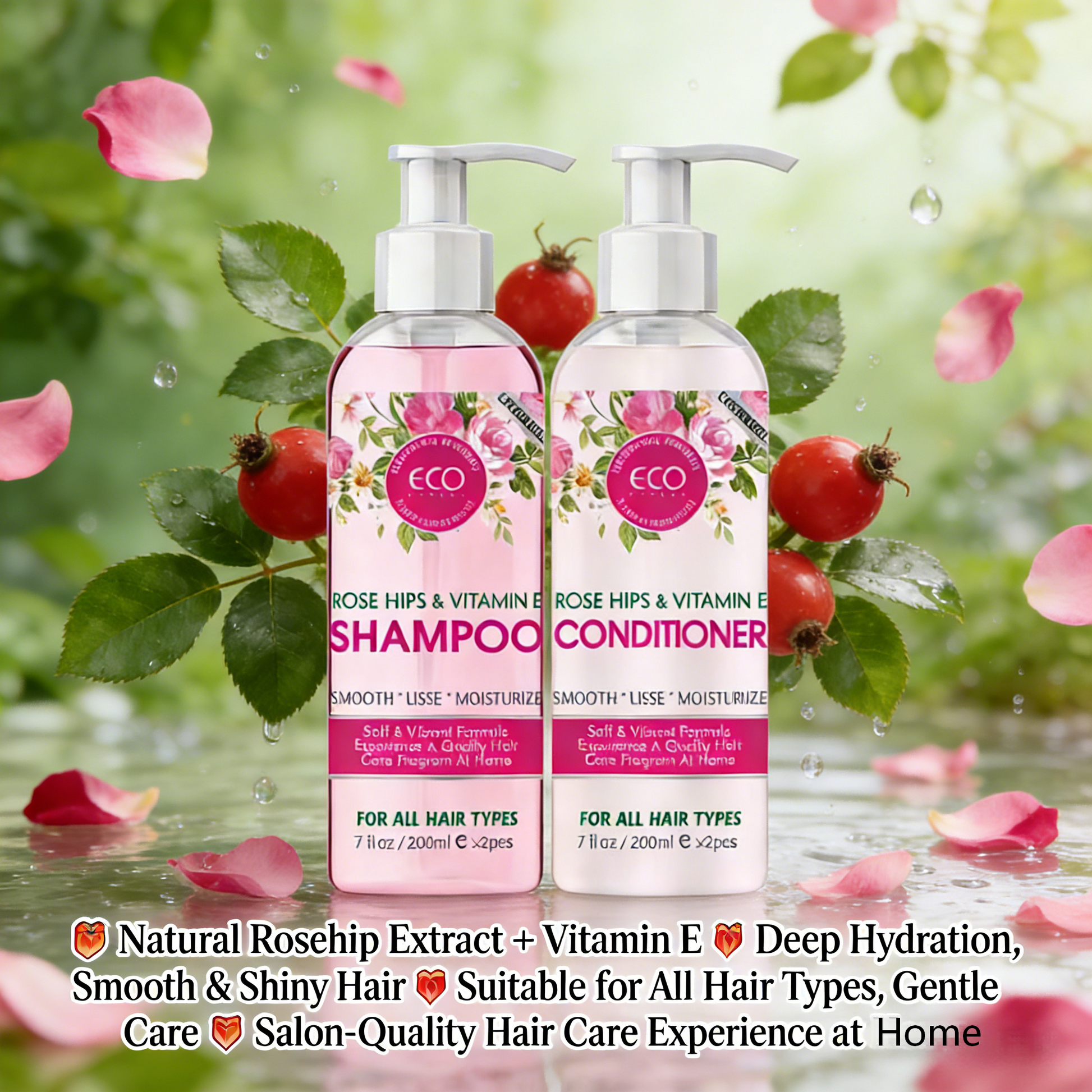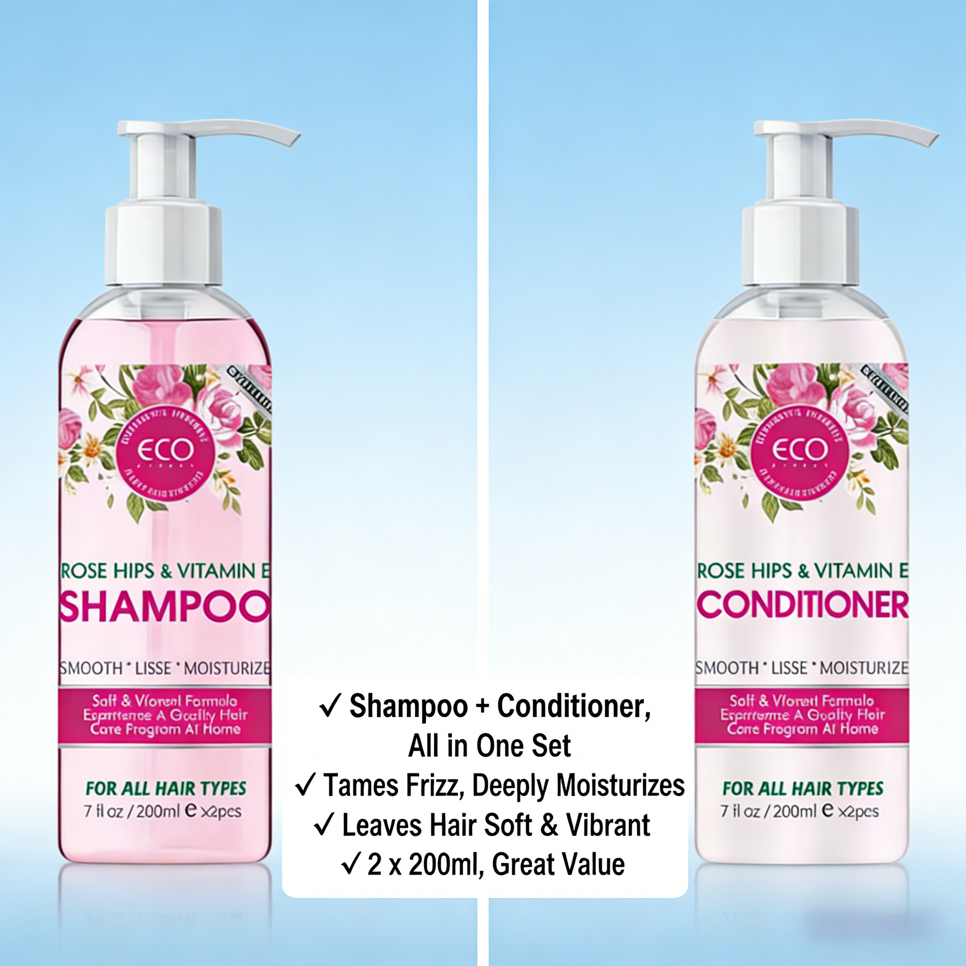 200ml x 2 Rose Hips & Vitamin E Shampoo & Conditioner Set – Plant-Based Hair Care for Soft, Moisturized Hair
