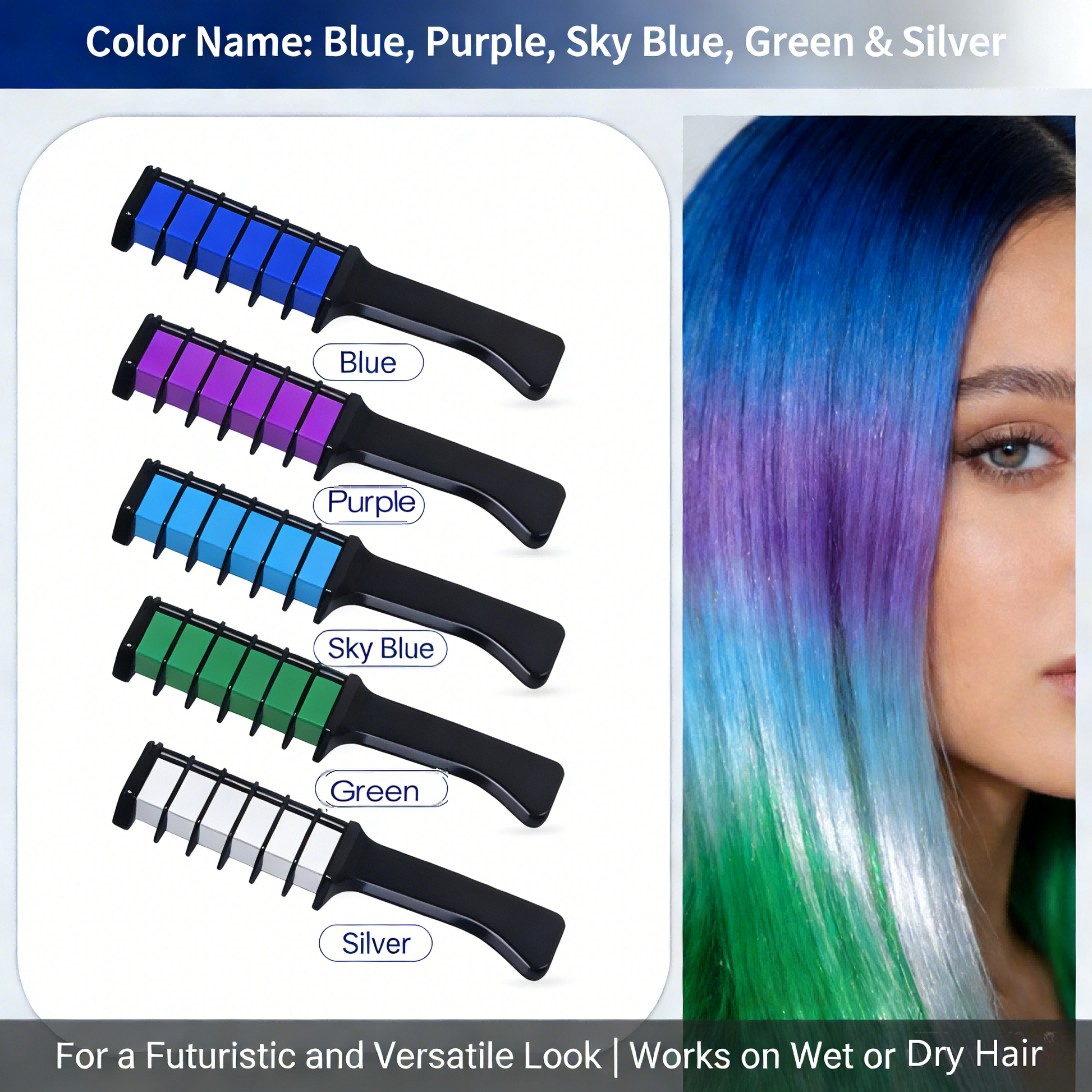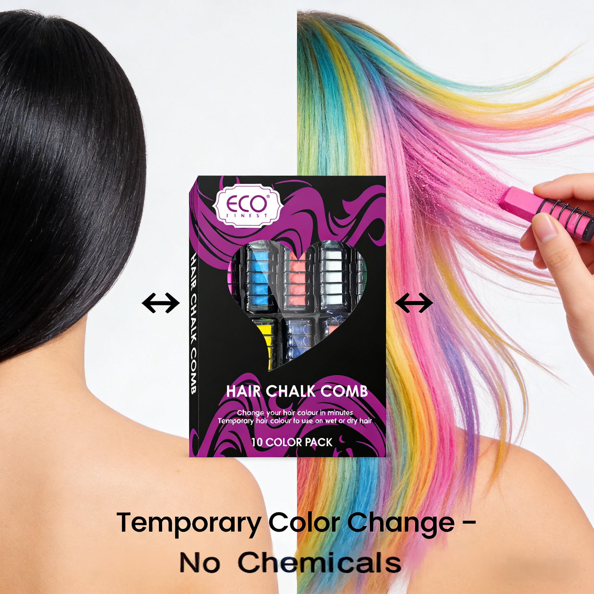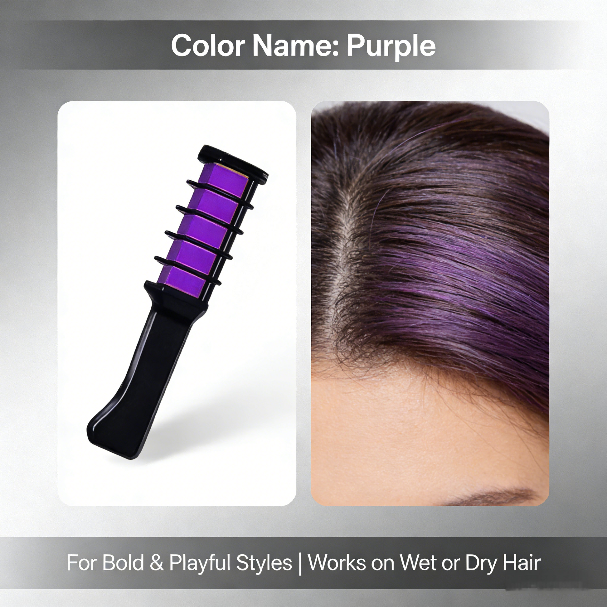 Transform your look in minutes with our temporary Hair Chalk Comb. Works effortlessly on wet or dry hair—simply comb through to add vibrant, fade-resistant color. Perfect for experimenting with 10 stunning shades without commitment. Ideal for parties, festivals, or everyday fun. Wash out easily, embrace change instantly