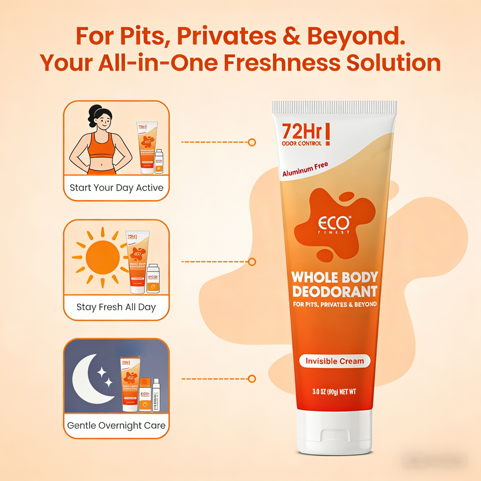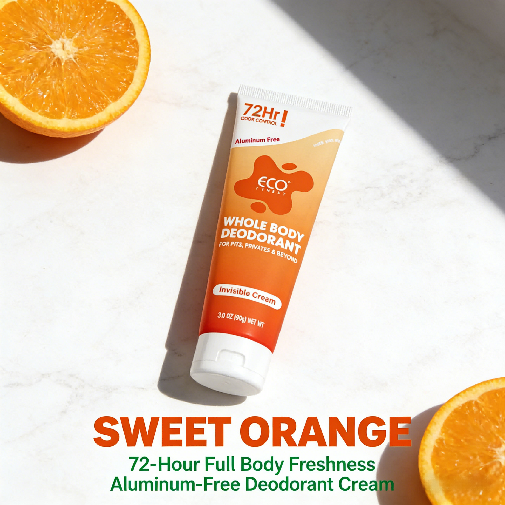 A weightless, aluminum-free deodorant that melts into skin, offering full-body odor protection infused with the uplifting essence of sweet orange